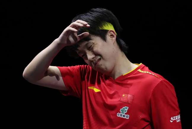 图为王楚钦在比赛中失分后。(图片来源:新华社)