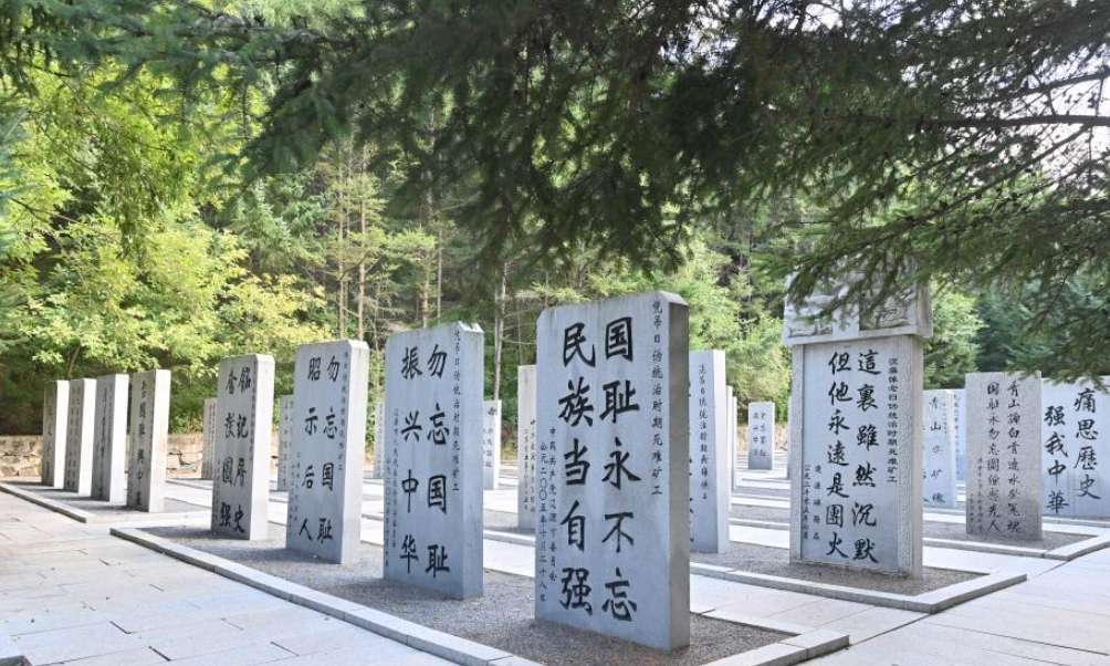 8月7日拍摄的东北沦陷时期辽源矿工墓陈列馆警示碑林。该陈列馆是日本侵华期间强占东北、掠夺资源、残害中国矿工的重要罪证。(图片来源:中新社)