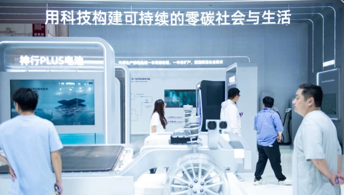今年7月20日,第三届中国国际供应链促进博览会在北京闭幕。图为观众在宁德时代展台参观。(图片来源:中新社)