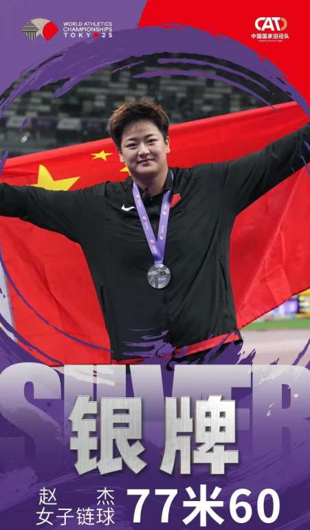 赵杰夺得东京田径世锦赛女子链球银牌。(图片来源:北京人民网)