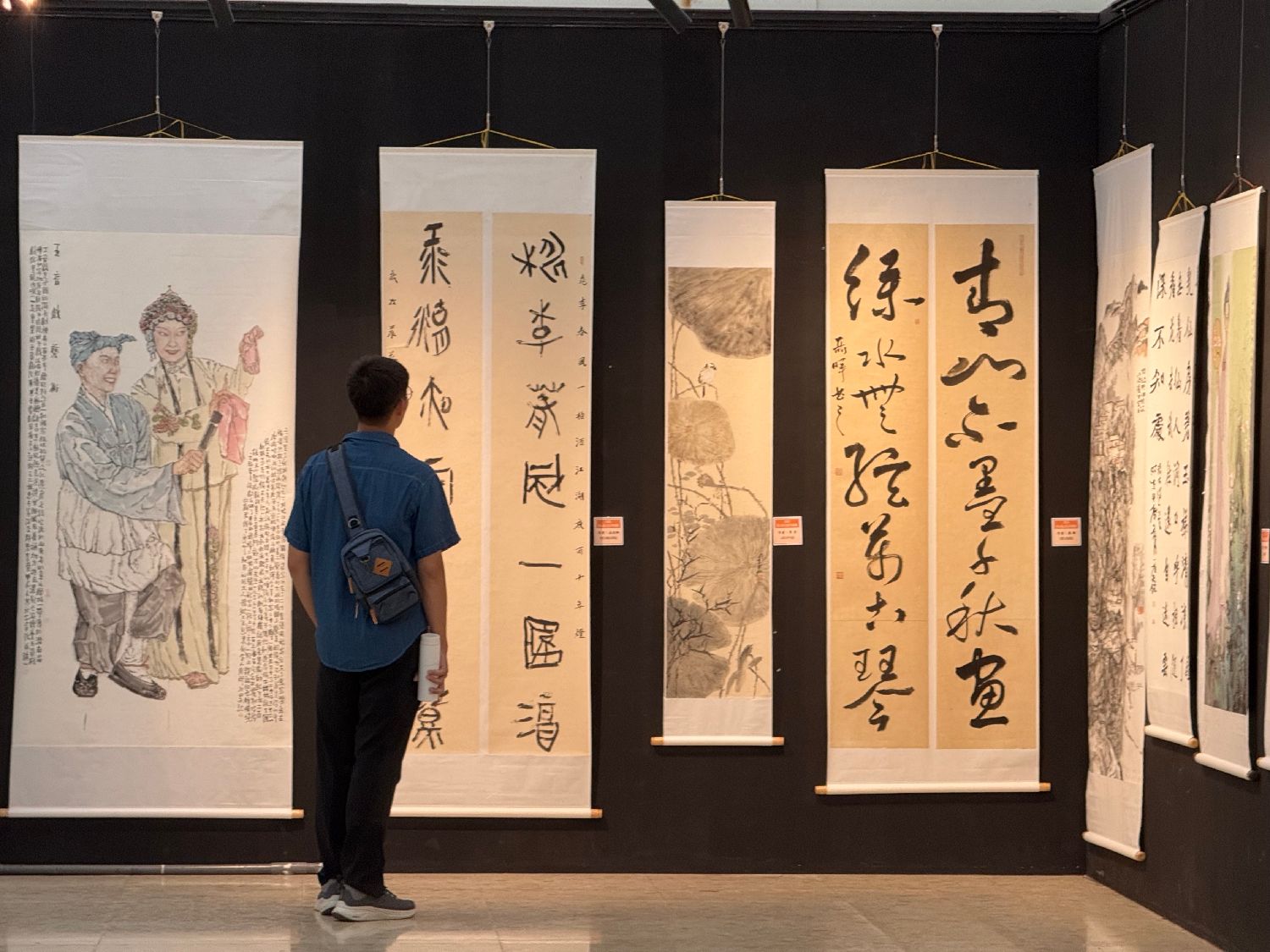 “第七届台鲁名家联展”近日在台湾嘉义开展,山东、北京、内蒙古等大陆多地艺术家的书画作品与宝岛观众见面。(图片来源:中新社)