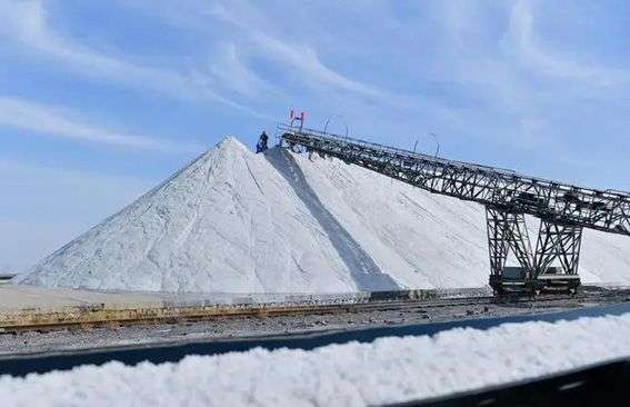 工人在天津长芦汉沽盐场堆放原盐。(图片来源:新华社资料图)