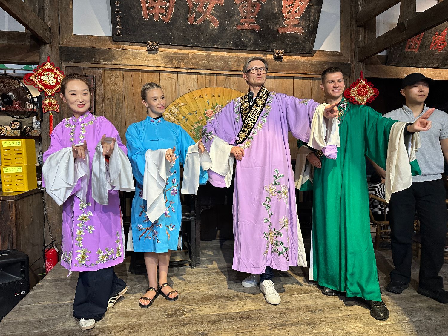 9月19日,谢尔盖·辛金斯(左三)在成都体验中国文化。(图片来源:中新社)