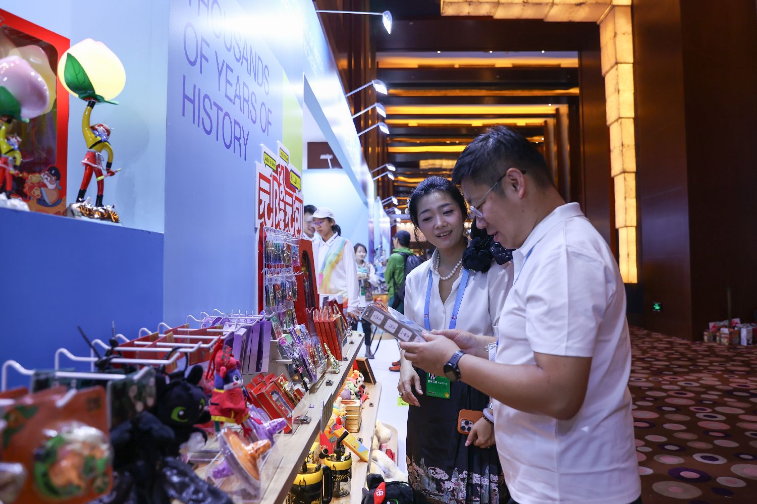 9月23日,2025北京文化论坛举行。图为嘉宾在文创展示区。(图片来源:中新社)
