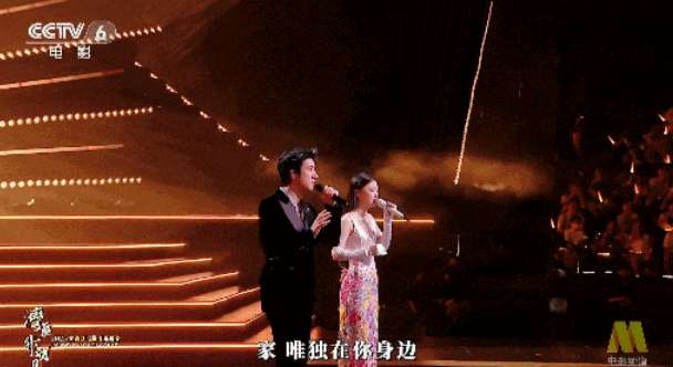 台湾歌手王力宏搭档大陆青年歌手单依纯合唱歌曲《落叶归根》。(图片来源:大陆央视新闻视频截图)