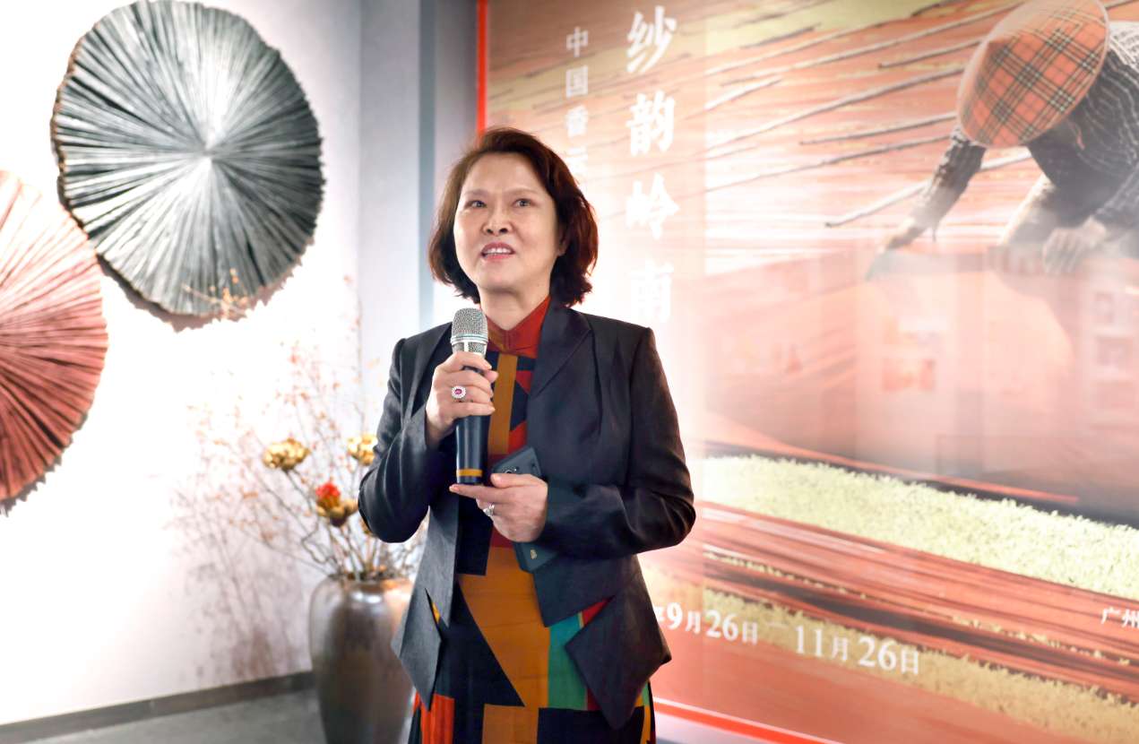 在中国华侨历史博物馆举办的“纱韵岭南——中国香云纱文化艺术展”现场,王雪讲起香云纱的故事。