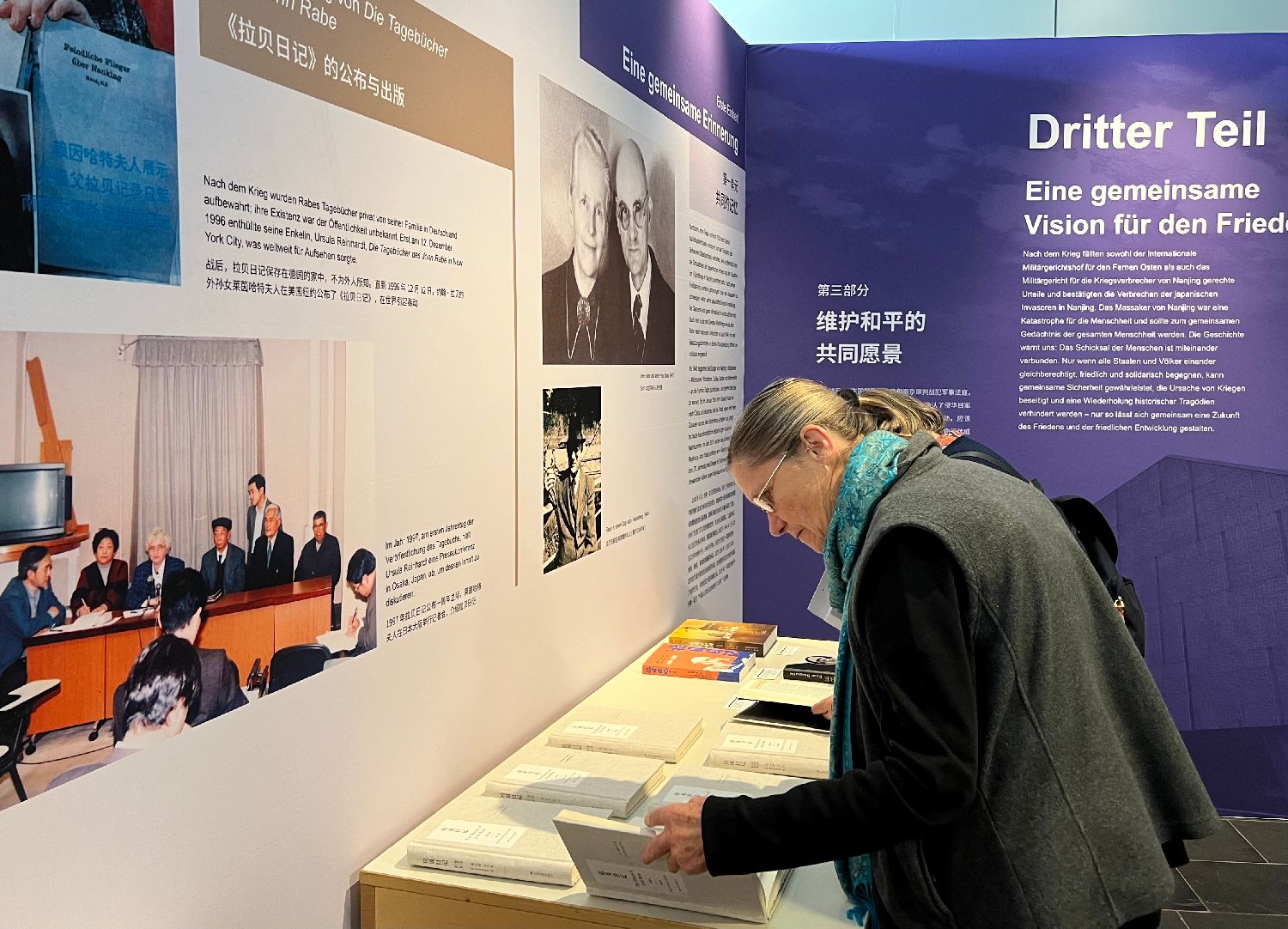 中国驻德国大使馆公使衔参赞杨琤琤致辞表示,中国人民始终没有忘记拉贝先生对生命的大爱和对和平的追求。和平来之不易,历史不容忘记。“让我们以本次展览为契机,共同铭记历史,携手面向未来,做正确历史记忆和人类良知的守护者,做友谊与合作的推动者,使和平与正义的薪火代代相传。”