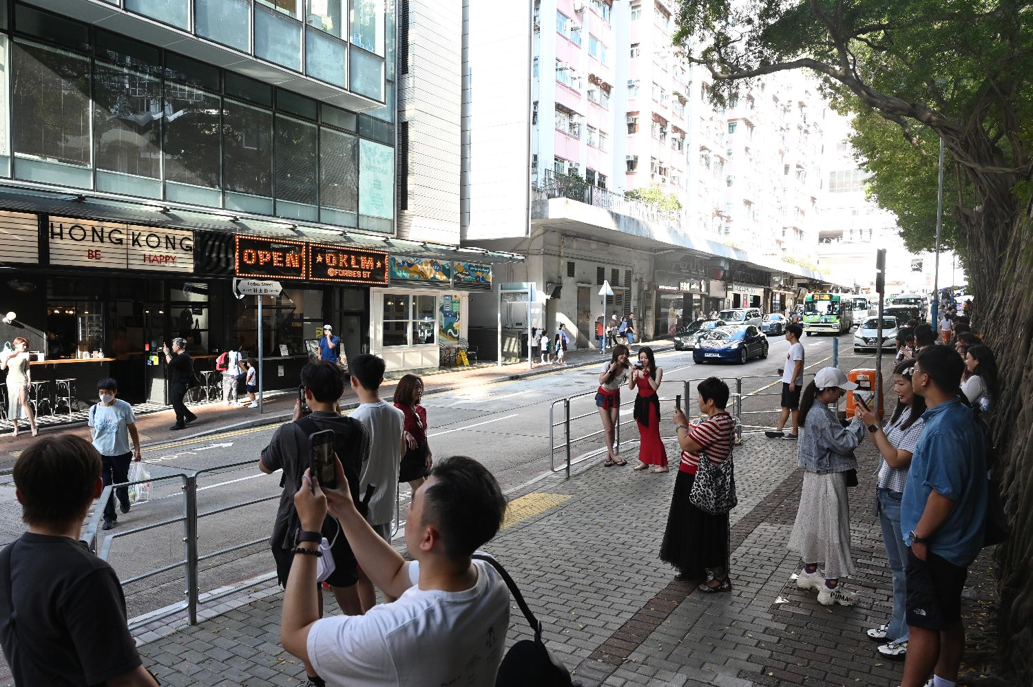 10月8日是2025年中国内地“十一”中秋8天长假最后一天。当天,不少游客在香港多地游玩,度过假期。图为游客在坚尼地城一带游玩。(图片来源:中新社)