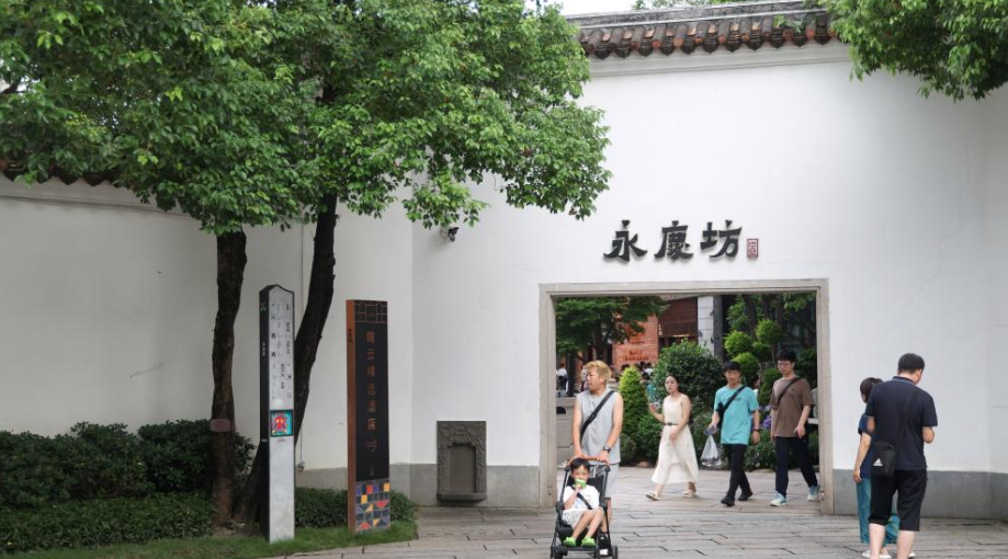 广州永庆坊位于荔湾区恩宁路,是一条有着千年历史的岭南文化特色街区。图为7月11日,游客在永庆坊参观。(图片来源:新华社)