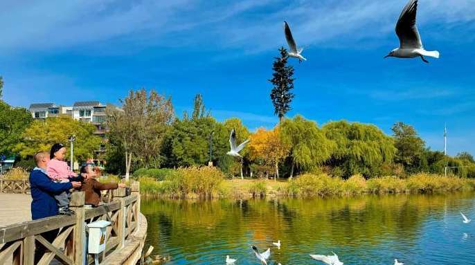 “每年这个时候我都会带着孩子来湖边看红嘴鸥,它们一点都不怕人。”清晨,在银川宝湖公园,市民王晓琳将面包屑抛向空中,成群的红嘴鸥灵巧地俯冲啄食,引得孩子欢呼雀跃。观鸟、摄影、散步,已成为许多银川市民秋日的必备活动。