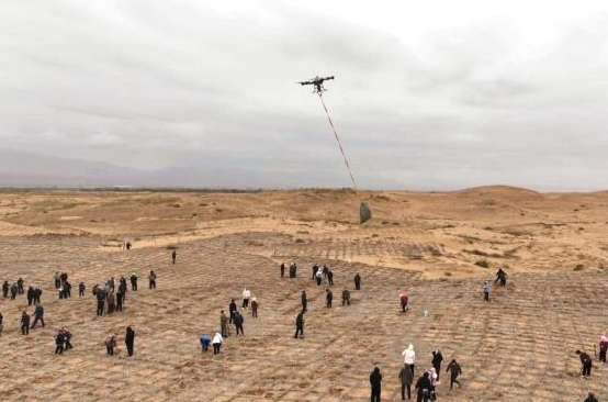 图为无人机飞播造林现场。(图片来源:中新网/阿拉善盟宣传部供图)
