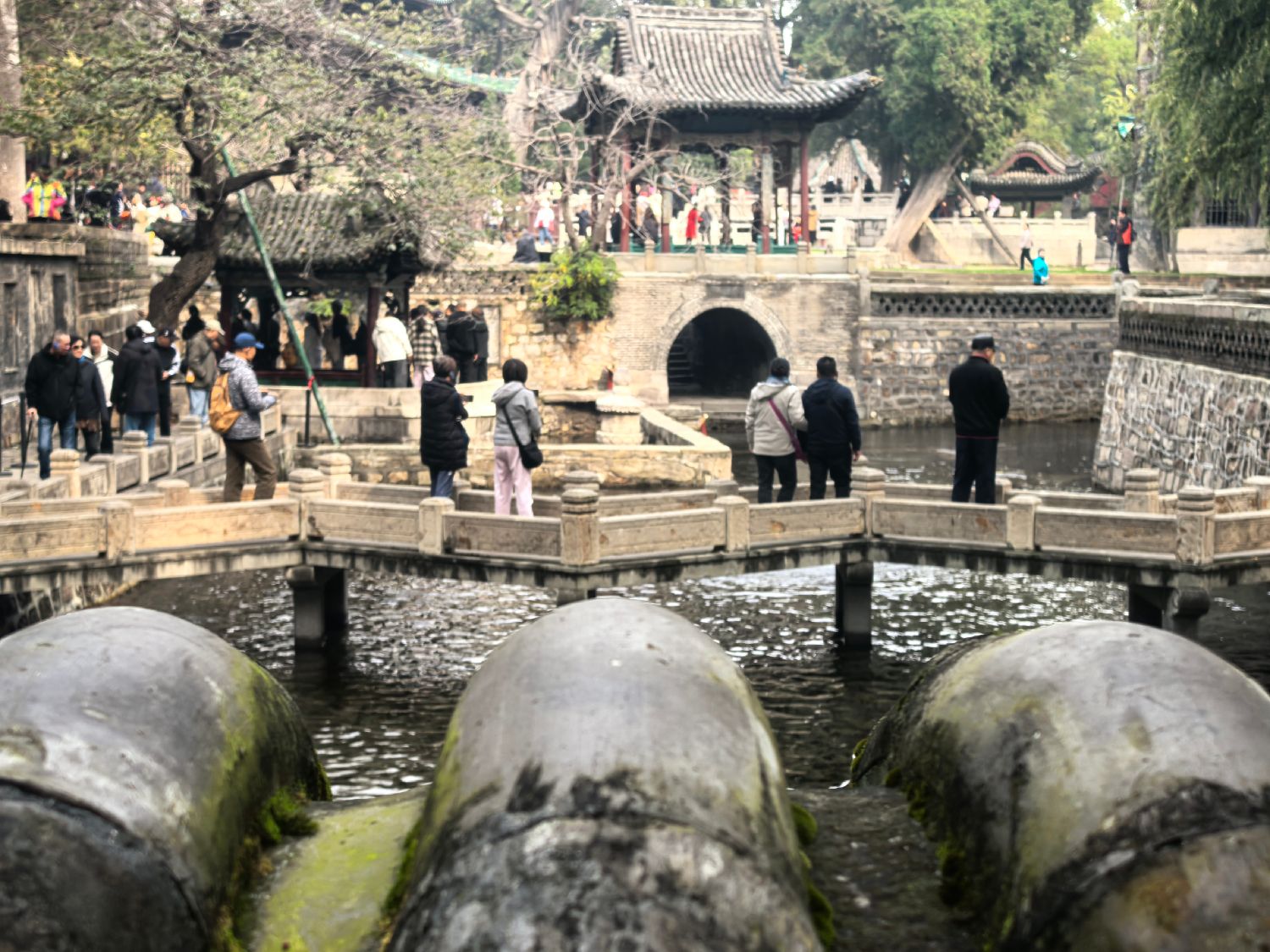 10月23日,游人在晋祠游览难老泉。(图片来源:中新社)