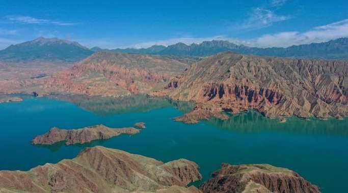 图为航拍青海省黄南藏族自治州尖扎县坎布拉国家地质公园内丹山碧水景观。(图片来源:中新网)
