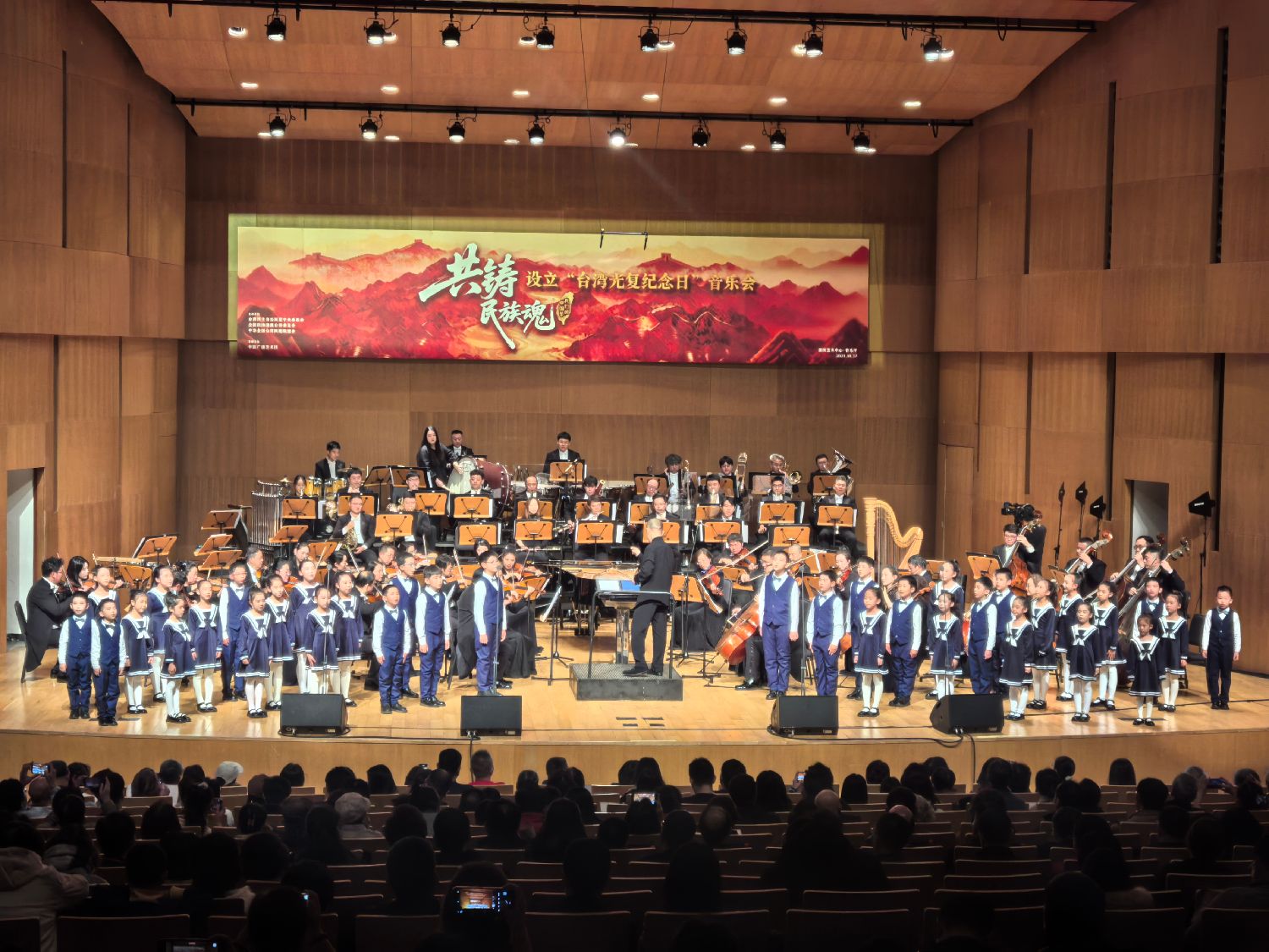 10月27日晚,“共铸民族魂——设立‘台湾光复纪念日’音乐会”在北京国家图书馆艺术中心奏响。图为童声合唱《台湾光复歌》。(图片来源:中新社)