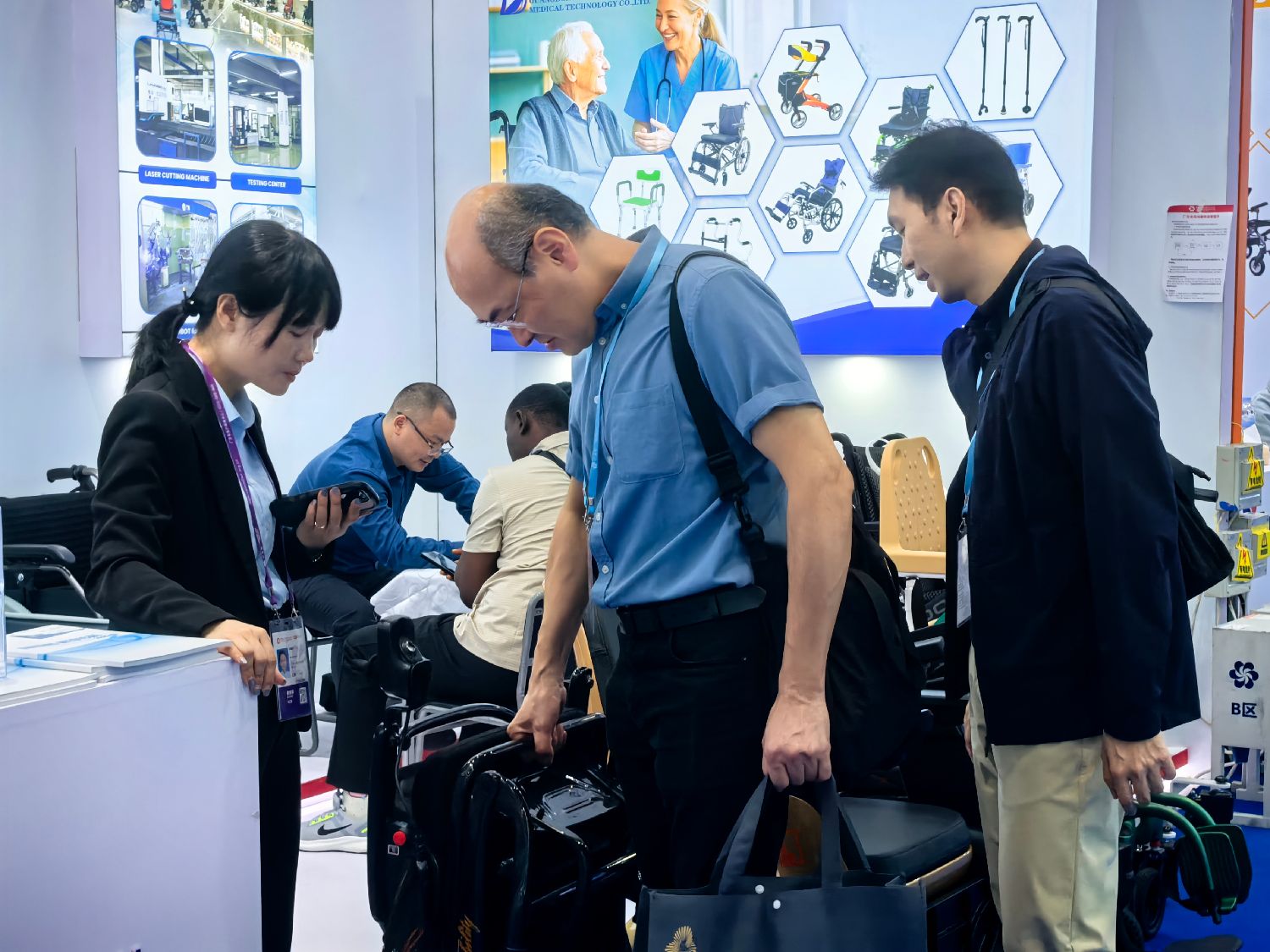巴西采购商马特乌斯(MATTHAUS)观摩后表示:“这款爬楼轮椅设计精巧,乘坐舒适,能够满足老年人的日常生活需求。其智能化的操作方式更是令人印象深刻,这正是我们一直在寻找的产品。”