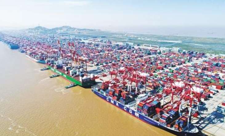 图为上海洋山港集装箱码头。(图片来源:新华社资料图)