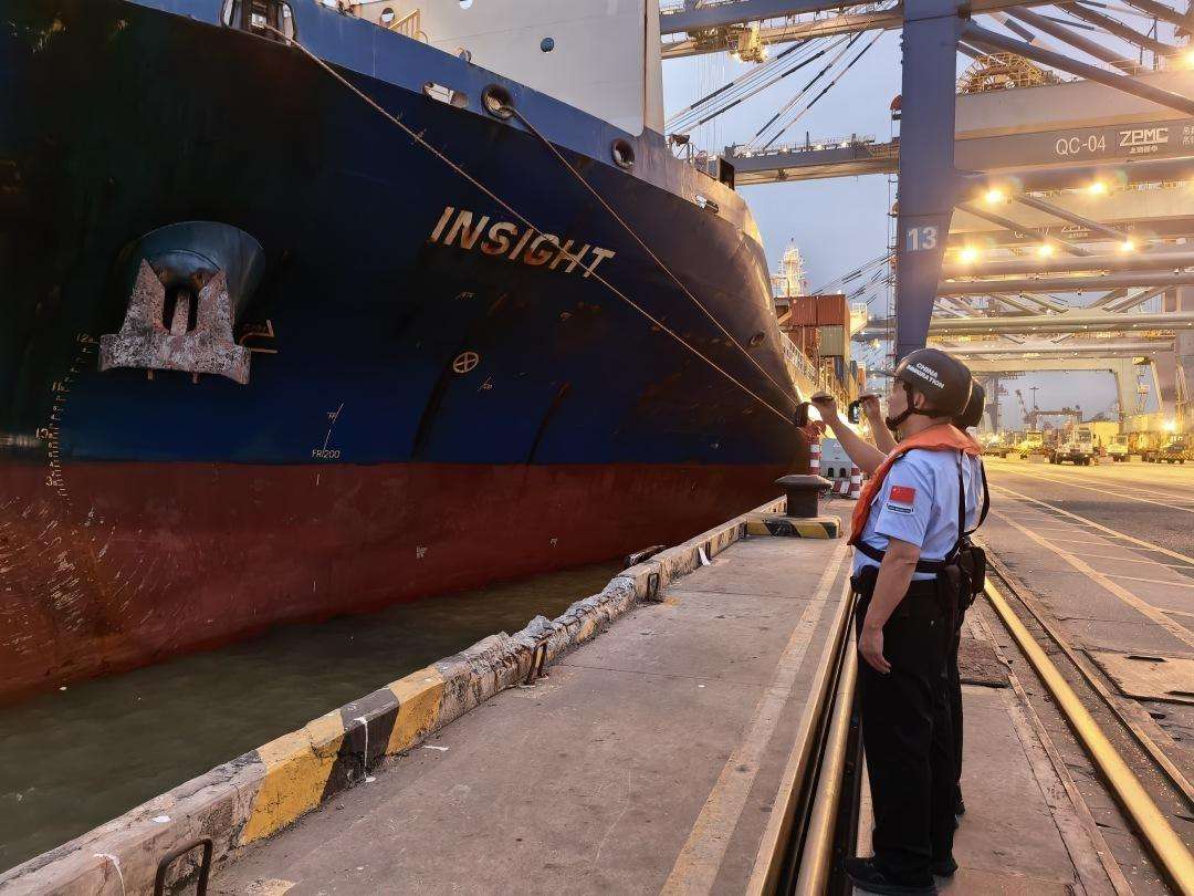 中新社报道,据广州南沙边检站介绍,由于停靠时间短,效率要求高,该站全力以赴,保障首航船马绍尔群岛籍“因赛特”轮快速通关。第138届中国进出口商品交易会日前在广州闭幕,该船装载着锂电池、小家电、灯具等“中国制造”的订单货物,将于7日清晨8时通过这条新的海运通道,直航奔赴东南亚市场。