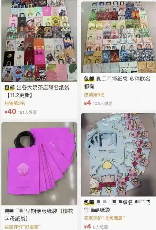 “90后”上班族友友收集了近200个奶茶袋。她和同事经常互换子。“这就像集邮,是一种社交。”她认为奶茶袋带有圈层属性,在平台上分享收藏,也是一种获取认同的方式。