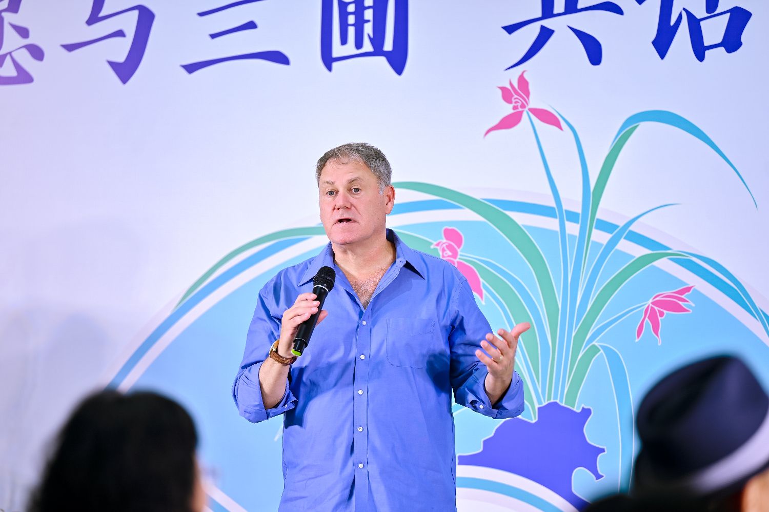 8月24日,广东广州,乔西・塞利格参加当地一个画展交流时,现场分享其在动漫创意开发、商业运营等方面的经验与体会。(图片来源:中新社)