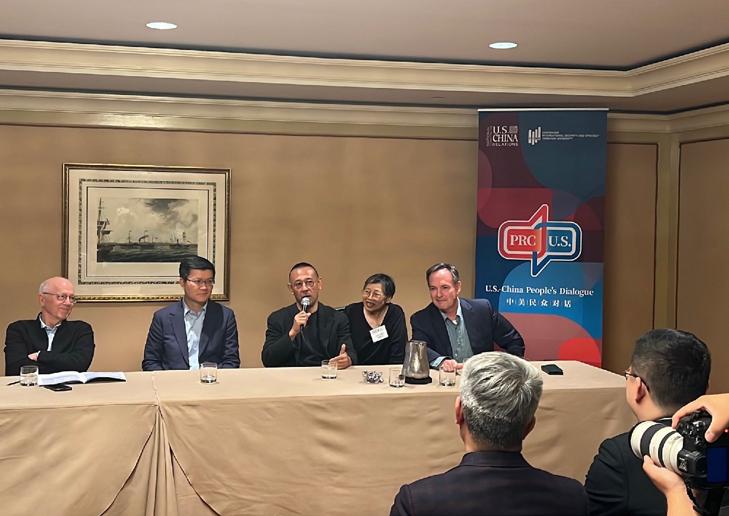 16日,一场媒体交流会为“中美民众对话2025”拉开序幕。清华大学校务委员会副主任杨斌、清华大学战略与安全研究中心主任达巍、中国知名电影导演姜文、美中关系全国委员会会长欧伦斯、威尔逊中心基辛格研究所前所长罗伯特·戴利与中美媒体见面,为即将展开的对话活动预热。