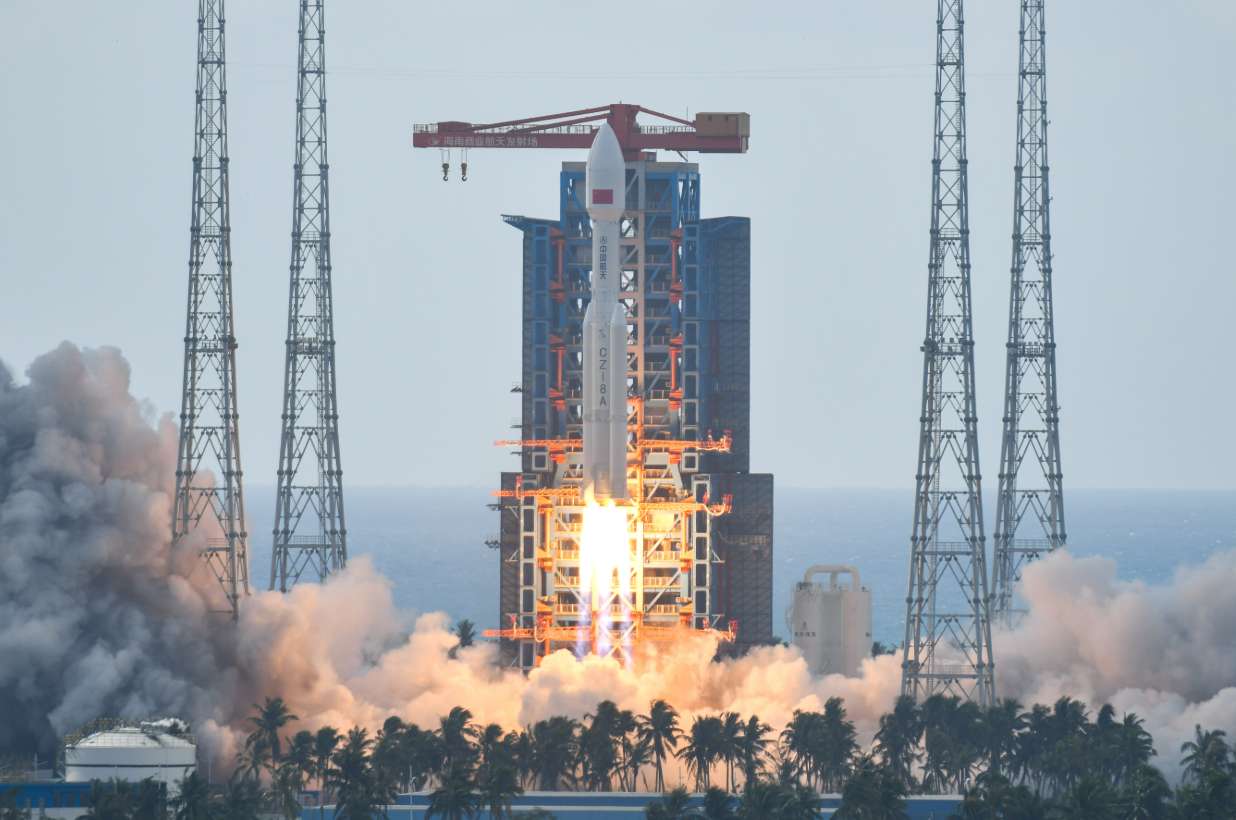 中国长征八号甲运载火箭点火升空。(图片来源:中新社)