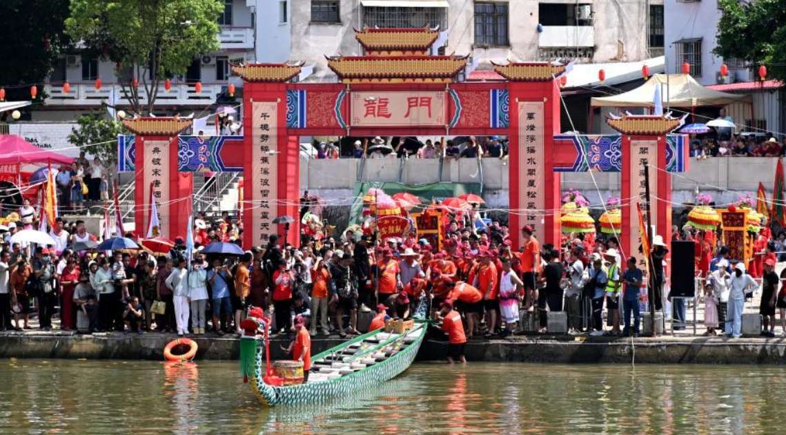 8月8日,2025年枫亭水阁巡游活动在福建省莆田市仙游县枫亭镇精彩上演。(图片来源:中新社资料图)