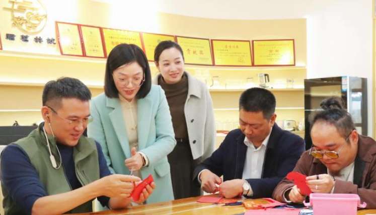 11月27日,非遗体验——茶韵流芳暨剪艺传情活动在福建省宁德市举行。图为剪纸技艺互动。(图片来源:中新网)