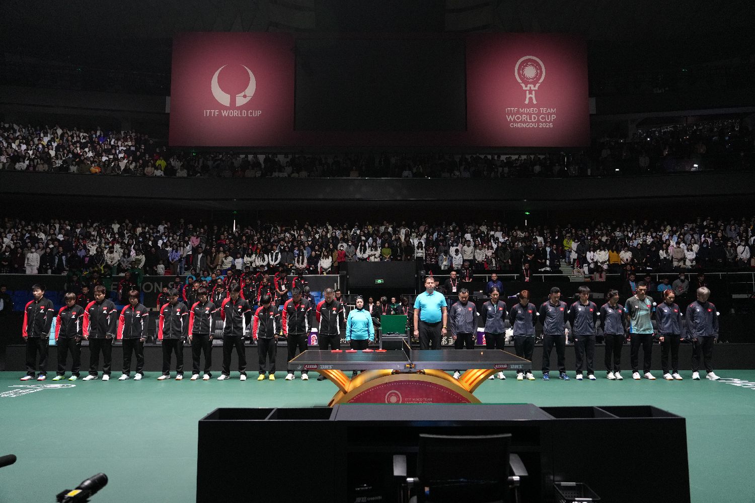 【本报讯】2025年成都国际乒联混合团体世界杯(简称:成都混团世界杯)11月30日举行揭幕战,中国队以8比1战胜中国香港队。赛前,国际乒联官员、参赛运动员、上万名观众共同为香港火灾罹难者默哀。