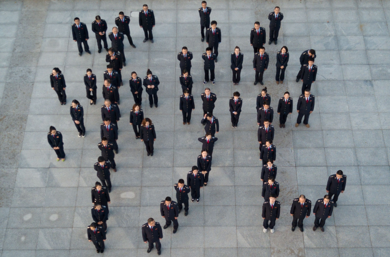 江苏南通税务工作人员组成巨型“税”字。(图片来源:中新网资料图)
