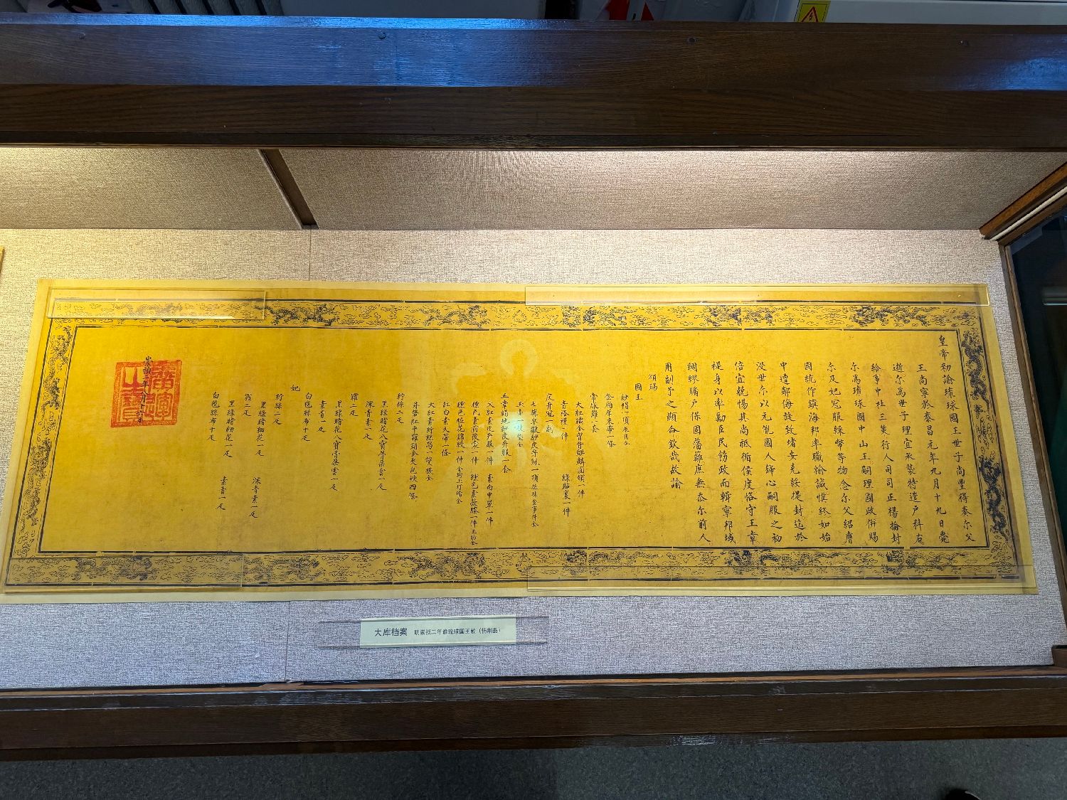 11月28日,旅顺博物馆展出的明朝崇祯皇帝册封琉球国王的敕谕。(图片来源:中新社)