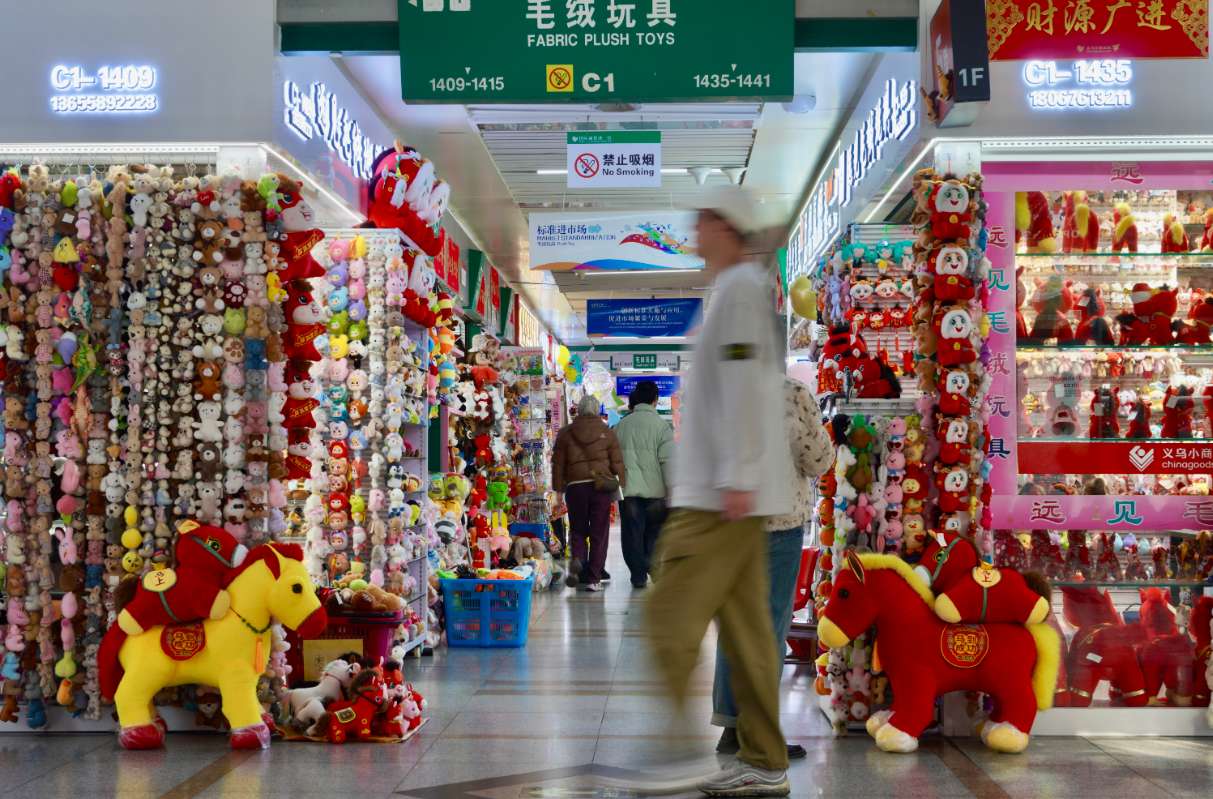 12月6日,浙江义乌市场马年春节用品热销。虽距离马年春节还有一段时间,但“世界超市”浙江义乌的年味已浓——福字、对联等传统年货产品热销。(图片来源:中新社)