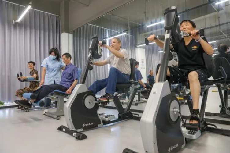 中国老年人利用适老化健身器材进行锻炼。(图片来源:中新网资料图)