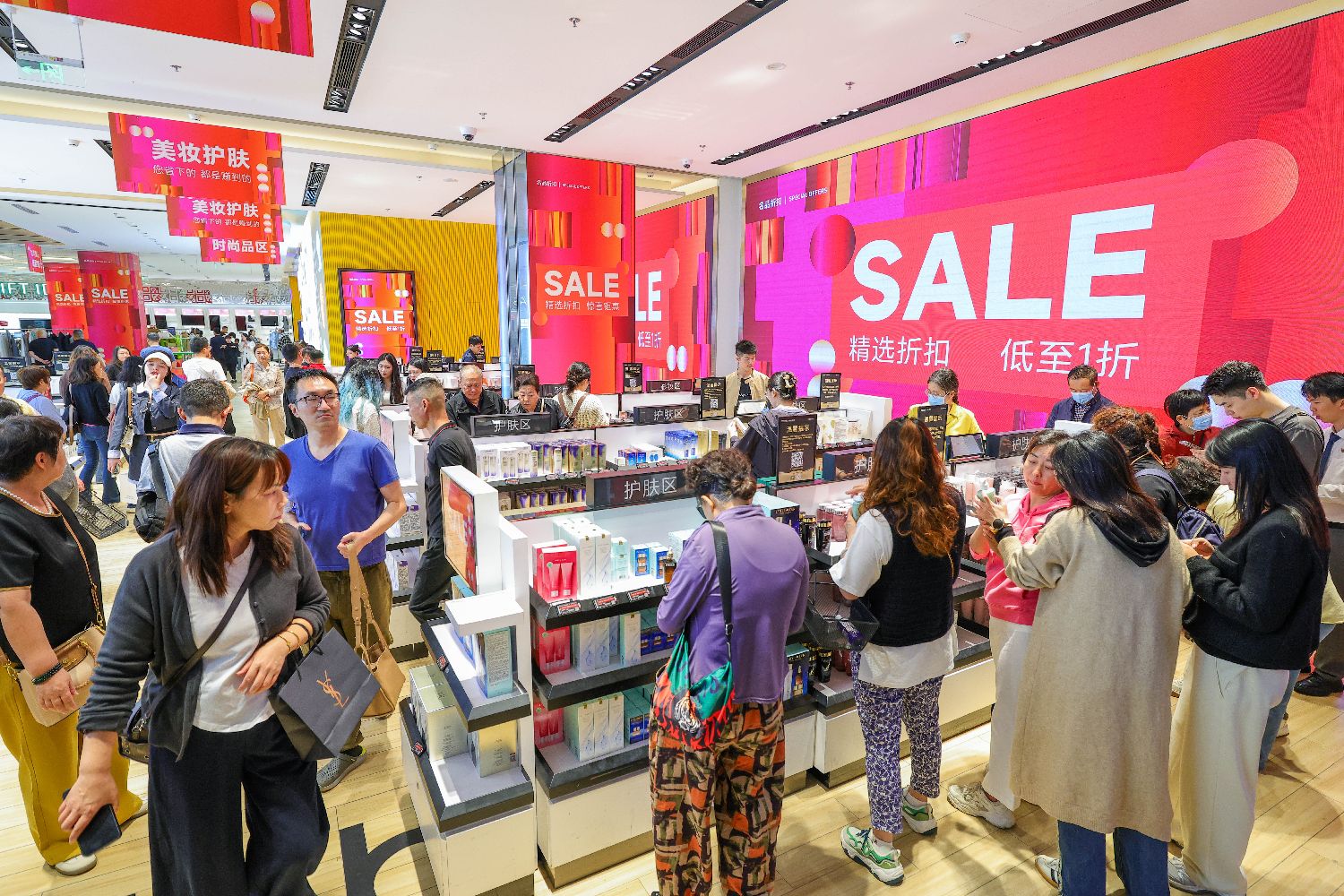 cdf海口日月广场免税店内,黄金饰品、电子产品、香水化妆品等商品尤受青睐,部分热门门店前排起长队;海控全球精品免税城内,猫粮狗粮、宠物零食、降噪耳机、拍立得相机等琳琅满目。销售人员说,封关后,海南自贸港客流明显增长,跨年活动与元旦假期带动销售额一路走高。