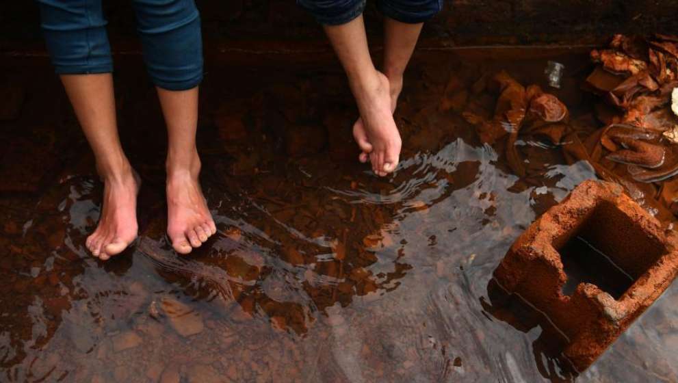 重庆一露天“温泉”成当地民众免费泡脚场。(图片来源:中新网资料图)