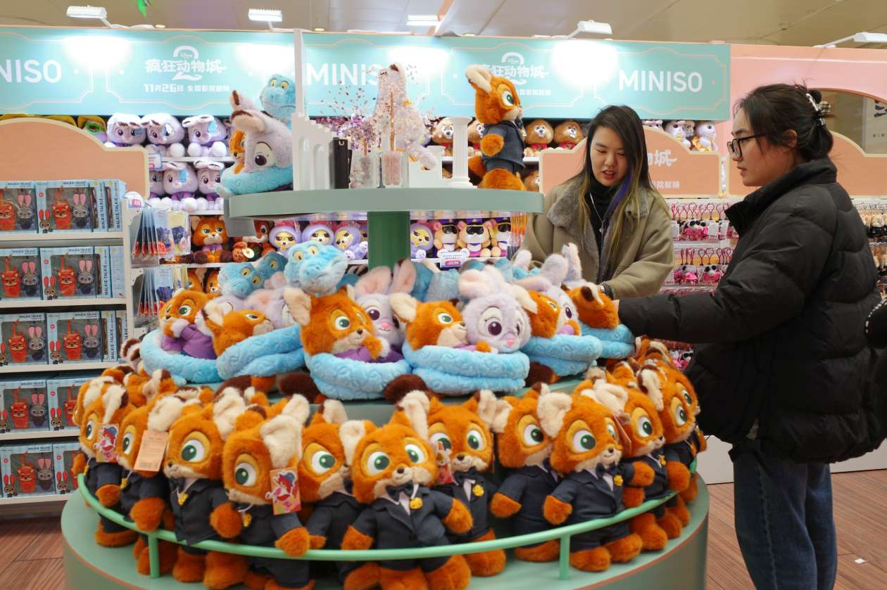 民众在位于北京国贸商城的《疯狂动物城2》主题快闪店内购物。(图片来源:中新社)
