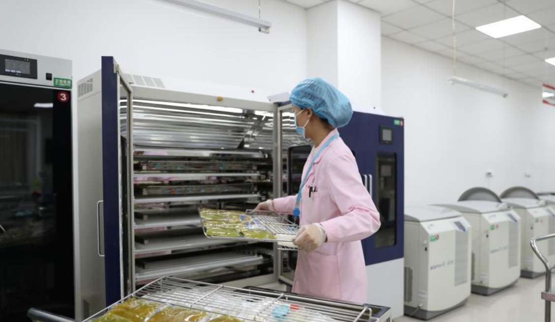 中国一家血液中心成分制备科的工作人员将血浆进行高温灭活处理。(图片来源:中新社资料图)