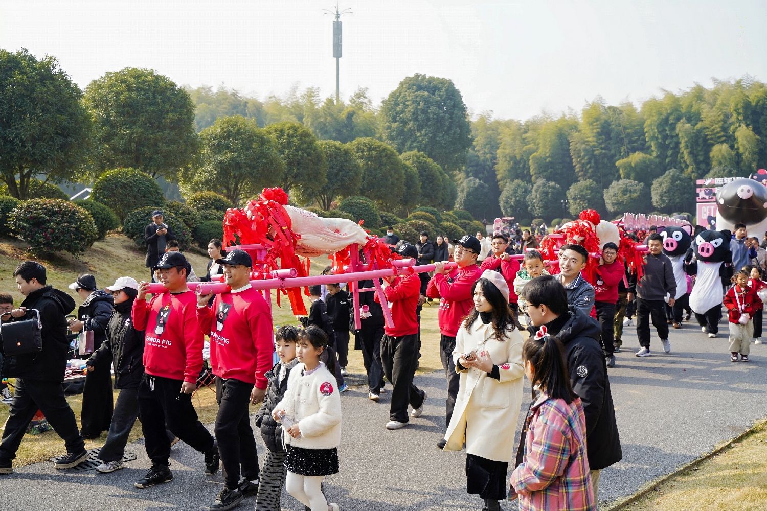 2026金华熊猫猪猪第三届年猪文化节1月17日至18日在浙江金华举行。图为“年猪大巡游”现场。(图片来源:中新社)
