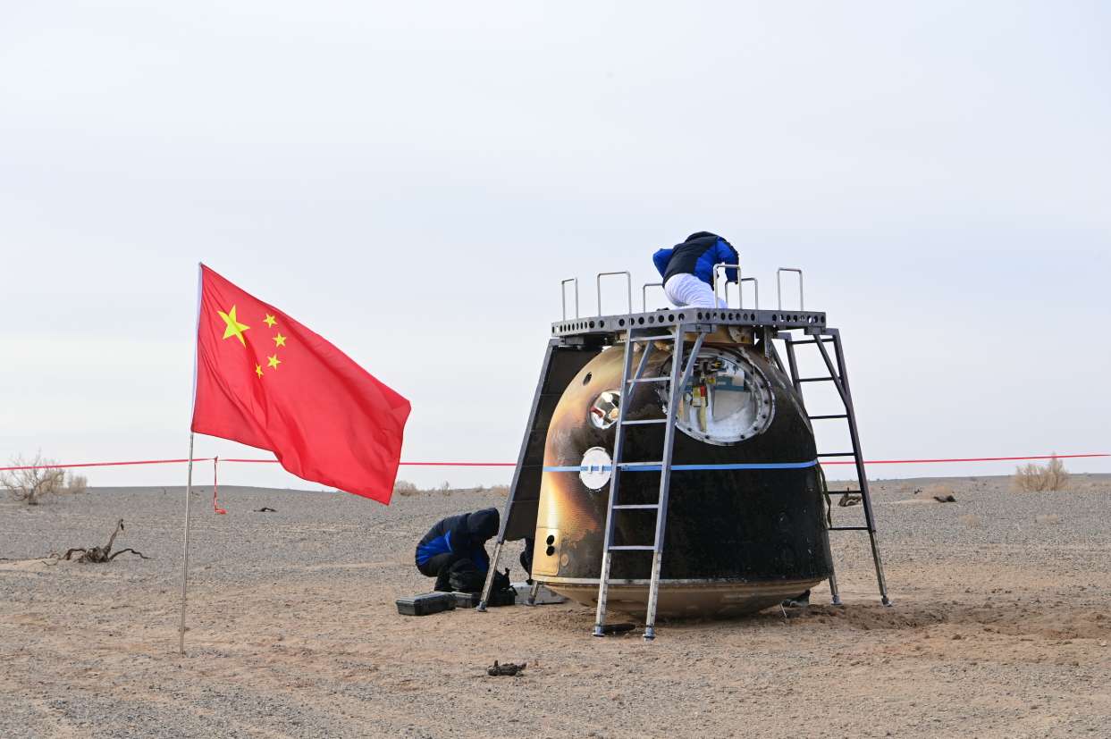 1月19日,据中国载人航天工程办公室消息,神舟二十号飞船返回舱在东风着陆场成功着陆。(图片来源:中新社)