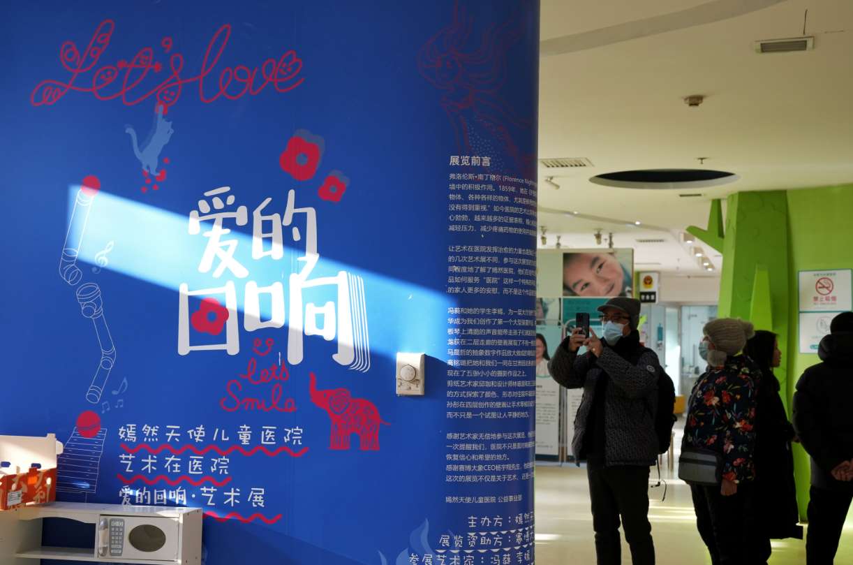 1月21日,市民关注北京嫣然天使儿童医院现状。(图片来源:中新社)