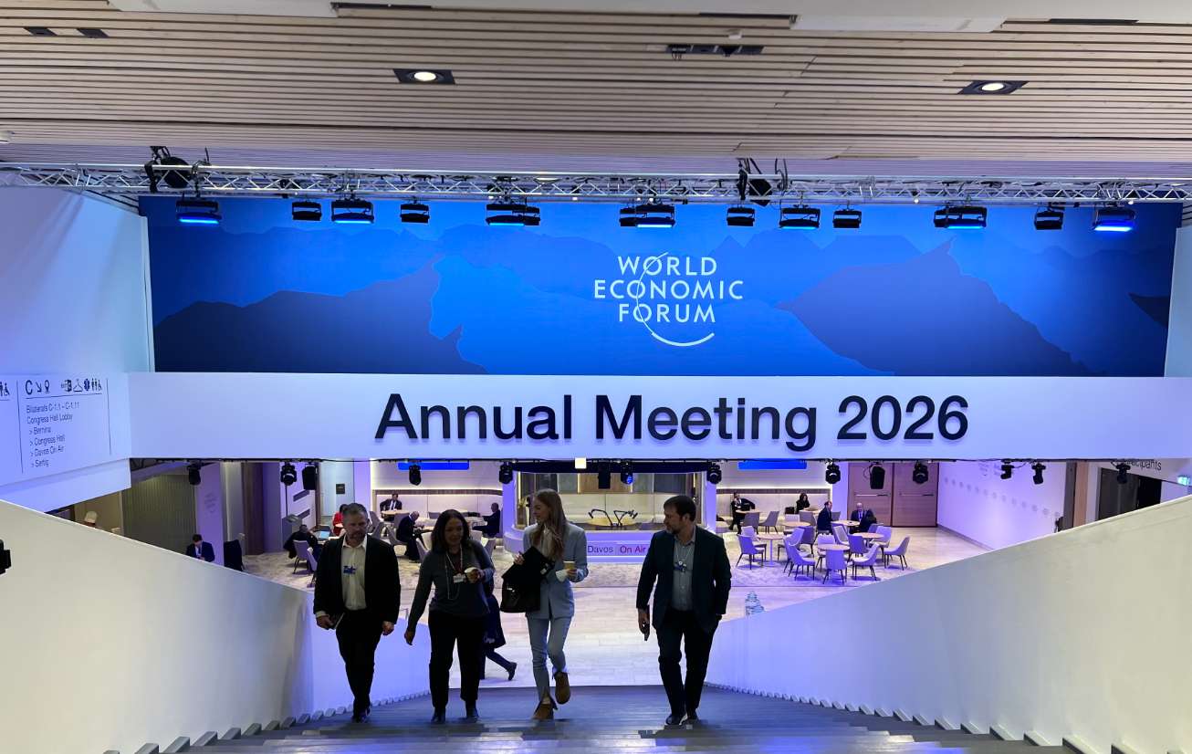 1月19日,世界经济论坛2026年年会将在瑞士东部小镇达沃斯拉开帷幕。图为会议中心会场。(图片来源:中新社)