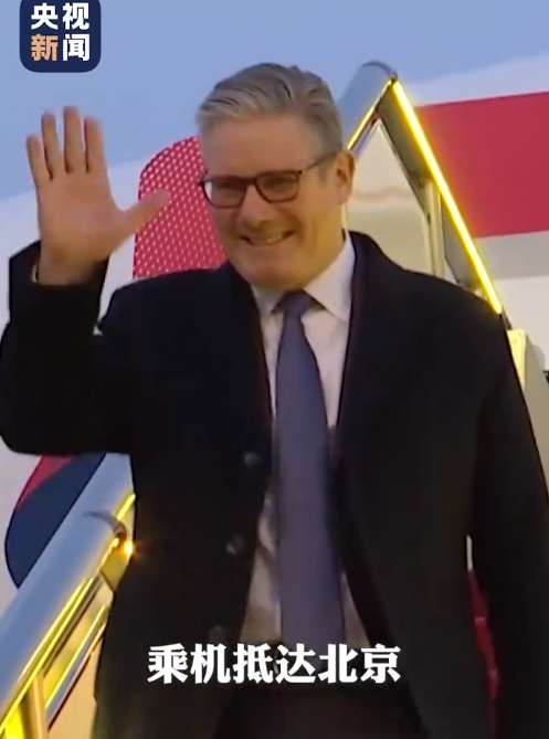 斯塔默28日抵达北京。(图片来源:大陆央视新闻客户端视频截图)