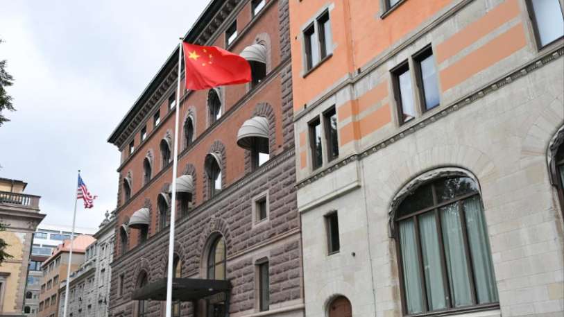 中美此前在瑞典斯德哥尔摩举行中美经贸会谈地点外景。(图片来源:大陆央视新闻客户端)