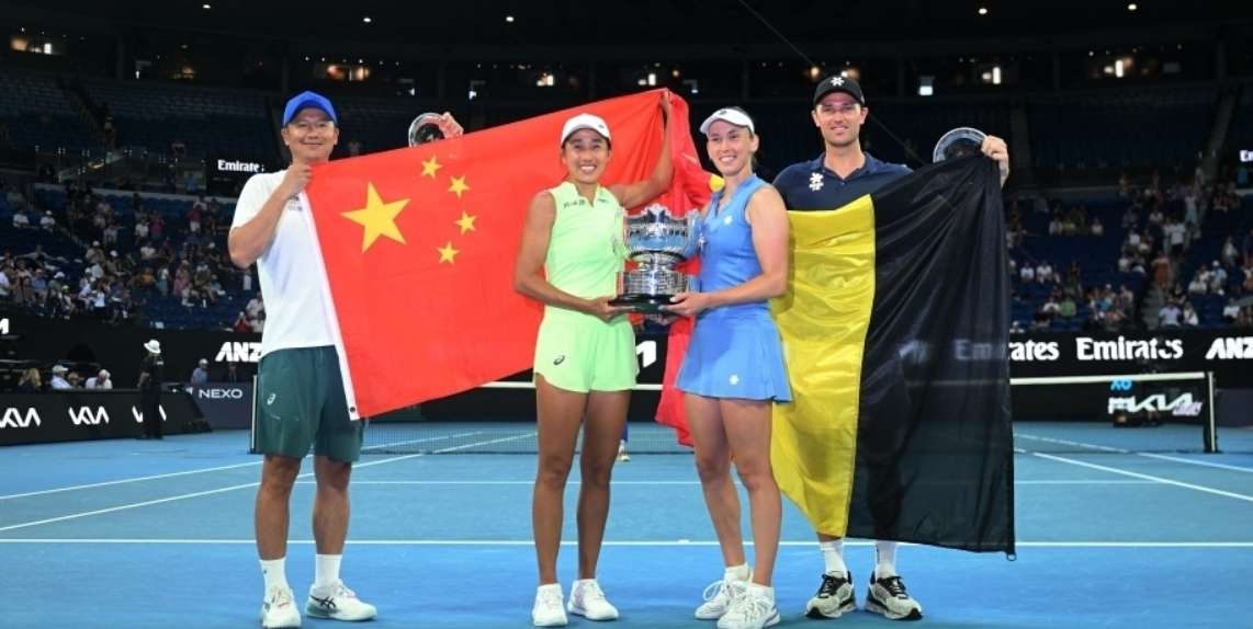 1月31日,2026澳网女双决赛,张帅/梅尔滕斯组合夺得冠军。(图片来源:中新网)