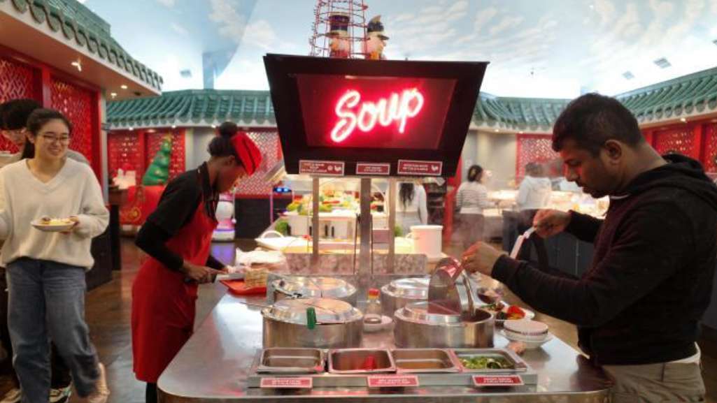 2023年11月22日,顾客在加拿大大多伦多地区一家自助式中餐厅用餐。(图片来源:中新社)
