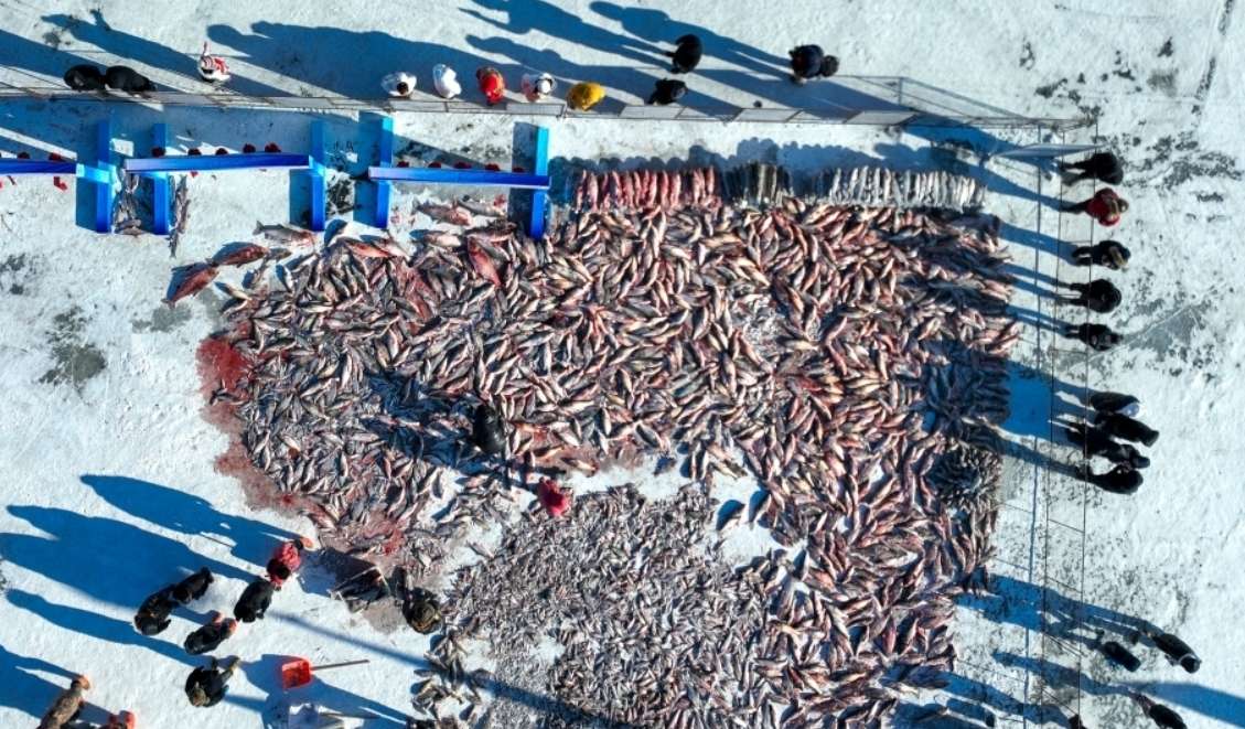 1月,吉林大安各大渔场陆续进入冬捕黄金期。(图片来源:中新社资料图)