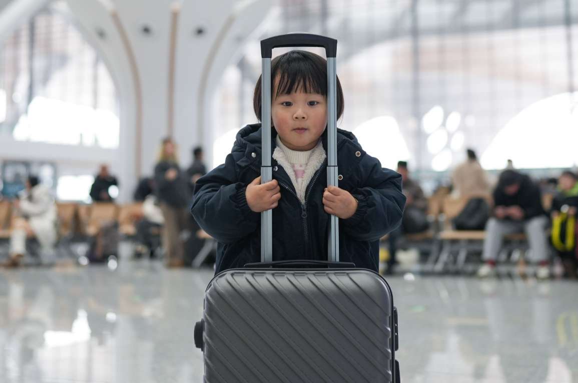 2月2日,重庆东站,一位小朋友在候车大厅玩耍。当日,为期40天的春运大幕正式拉开,这也是重庆东站开通运营后迎来的首个春运。春运期间,重庆东站预计发送旅客41万人次。(图片来源:中新社)