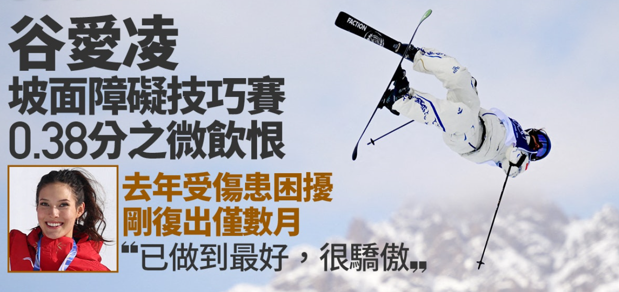 谷愛凌上屆奧運在女子自由式滑雪大跳台及U型場地技巧賽連奪兩面金牌,坡面障礙技巧賽獲銀牌,今屆冬奧再次出戰這3個項目,今日(9日)先在坡面障礙技巧賽決賽上陣。谷愛凌在第一跳便獲得全場最高的86.58分,可是仍不足以為她帶來一面金牌。