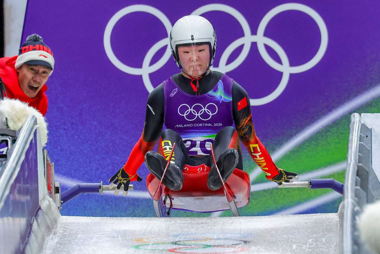 2月9日晚,2026年米兰-科尔蒂纳冬奥会雪橇项目女子单人赛在科尔蒂纳滑行中心举行,25名参赛选手完成了前两轮滑行。图为中国选手王沛宣在比赛中。(图片来源:中新社)
