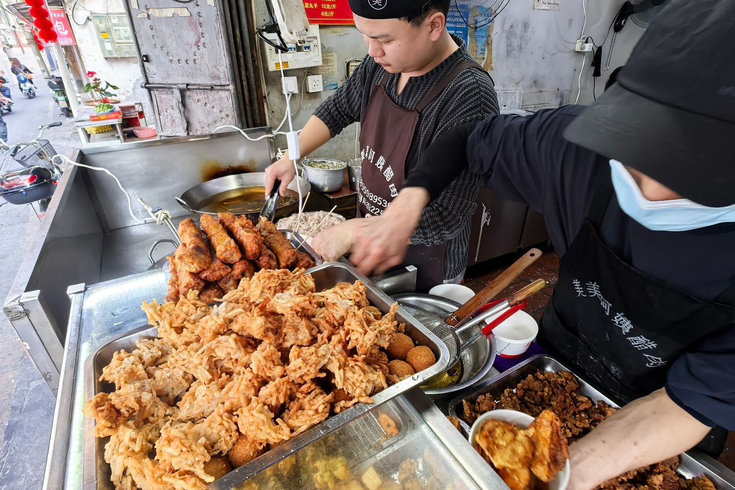 【本报讯】春节前的古城福建泉州,热油滚沸的声响从街边摊位与家家户户的厨房中传出,炸肉、炸芋头、炸紫菜的香味在红砖古城间满溢。带鱼、鸡卷、海蛎、豆腐、菜粿……在泉州,仿佛万物皆可炸,这股味道一直“香”到大年夜的餐桌上。