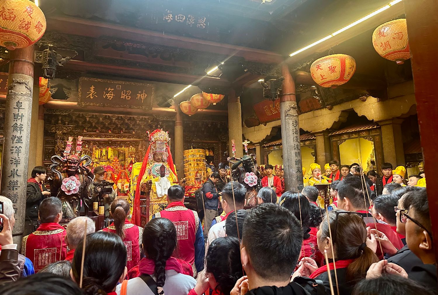 中新社报道,当日9时58分,湄洲妈祖祖庙内锣鼓铿锵、人潮如织,气氛庄重而热烈。两岸妈祖信众共同参与妈祖金身起驾仪式,行三献礼,恭请妈祖金身起驾出巡。